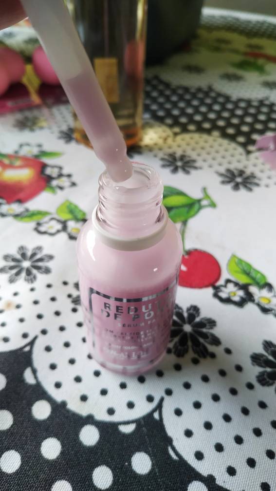 o seu cheiro como já mencionado acima é bem comum de produto facial mesmo, sua consistência que eu achei interessante é grossinha , densa de uma forma que eu não havia conhecido ainda se fosse mais durinha e não líquida seria facilmente confundido com creme para o rosto.