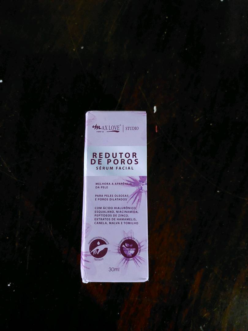 Olá lovers boa noite como vocês estão? eu to bem graças a Deus setembro já começou e agosto passou super rápido né? kkk que milagre, bom moranguinhos hoje vim trazer uma diquinha de milhões que é uma mini resenha de um produto bbb super interessante , espero que gostem :) a alguns meses atrás estava num grupinho de make no facebook e estavam em um debate sobre um serum famosinho ( não vou citar o nome pois não há necessidade ) e uma moça que citou o redutor de poros da max love que tem o mesmo efeito ( segundo ela) e como esse serum estava por 10,00 e o famosinho custa 150,00 clarooooooo que eu aproveitei e comprei né? ele vem nessa caixinha de papel com alguns detalhes e descrição.