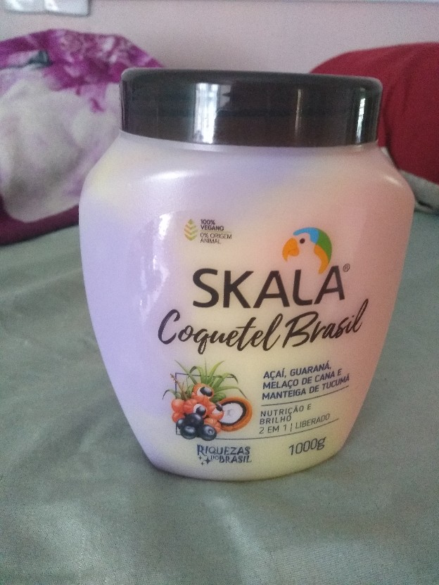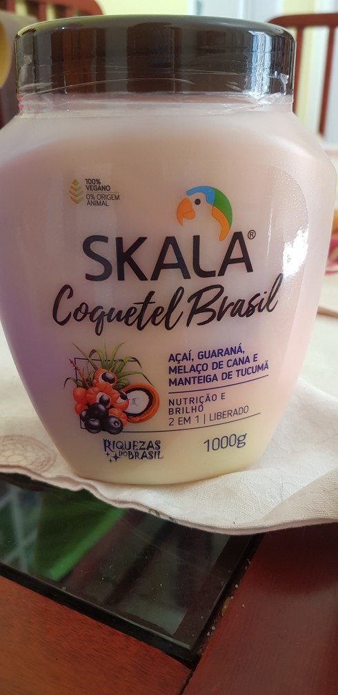 Bom ele tem um cheiro adocicado e super colorido um mix de três cores e que promete várias coisas : açaí, guaraná, melaço de cana e manteiga de tucumá promete nutrição e brilho 2 em 1 é liberado para now e low poo , 100% vegano sem parabenos, silicones e óleo mineral e é liberado para co-wash o coquetel Brasil se enquadra na fase de nutrição para fios com pontas secas , essa etapa repõe os lípidos e alinhamento aos fios.