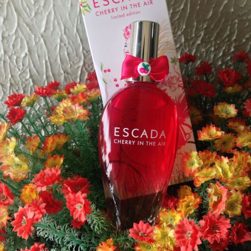 cherry in the air da escada é um perfume floral frutado feminino lançamento de 2013 Uma fragrância de bom gosto, não muito doce! Predomínio de cereja e Marshmellow. Uma evolução floral discreta que contrasta com amadeirado almiscarado deixando uma sensação atalcada. ele é muito parecido com o fantasy in bloom